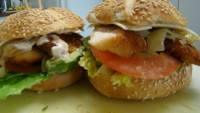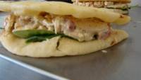 - Focaccia méditerranéenne grillées, garni de poulet, brie, tomate, olives à l'huile de basilic