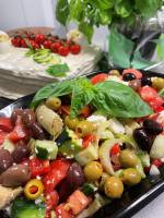 - Salade de pâtes aux légumes, rehaussée d'une sauce onctueuse à la crème de pesto sans allergènes
